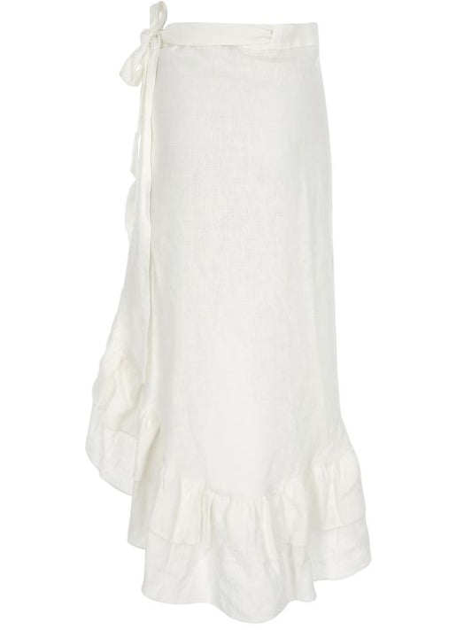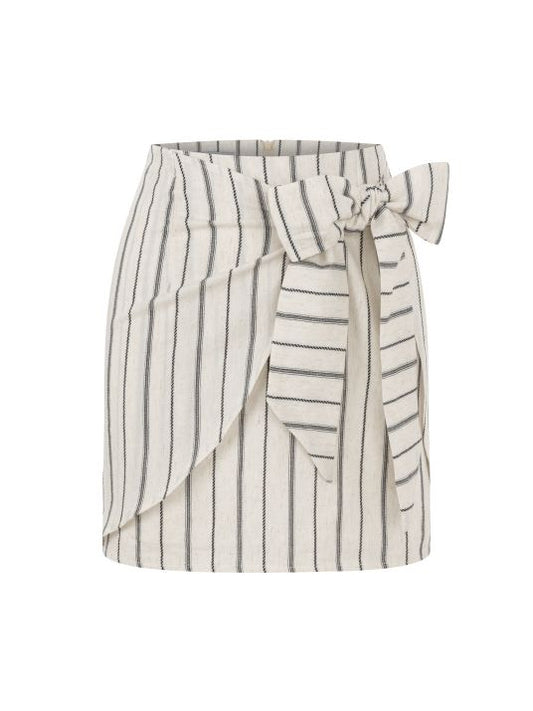 %100 Keten Belden Bağlamalı Ekru Pareo Etek