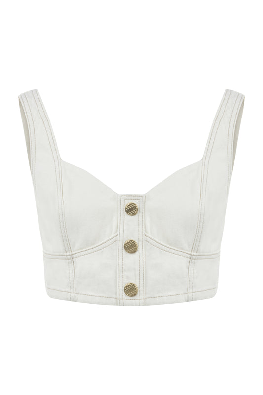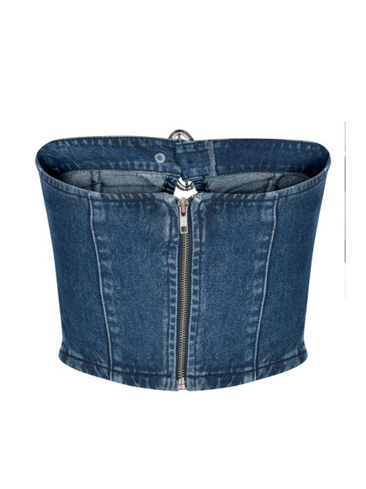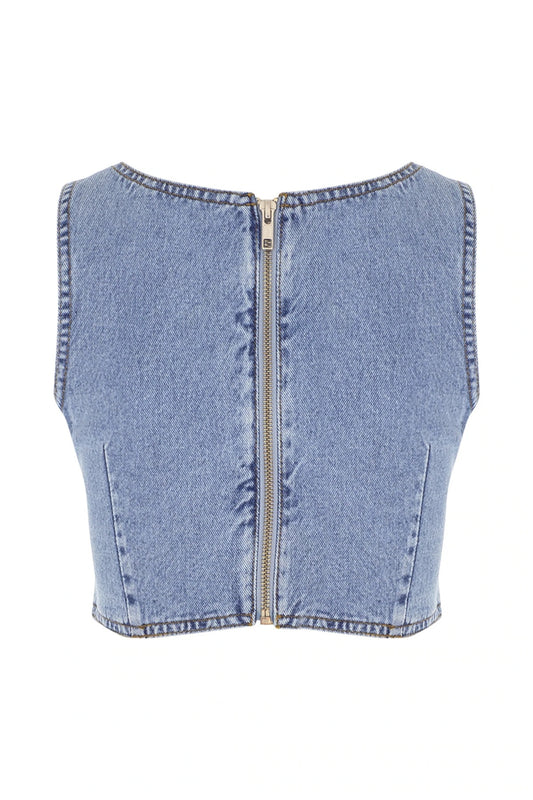 Boncuk İşleme Detaylı İnce Askı Mavi Crop Top