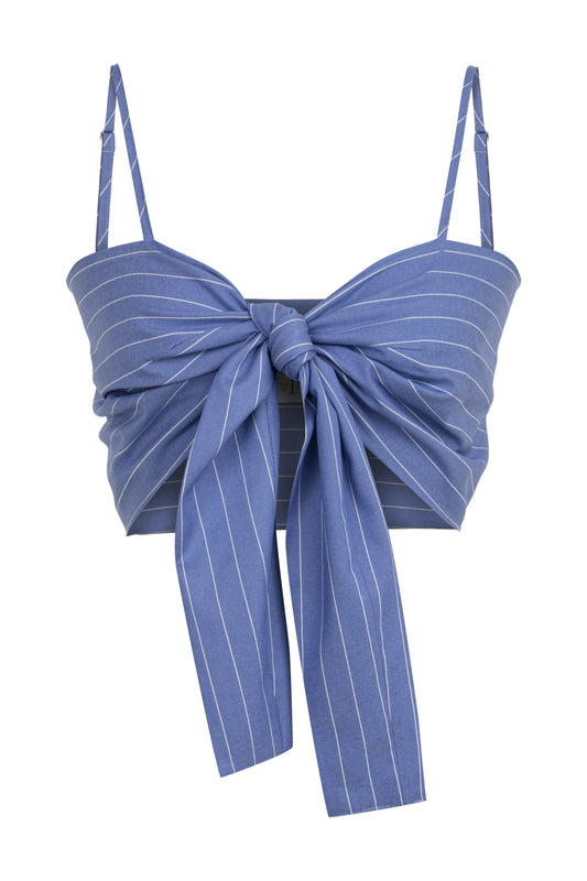İp Askılı Önden Bağlamalı Mavi Çizgili Bluz