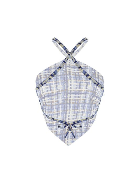 Boyundan Bağlamalı Sırt Dekolteli Desenli Bluz