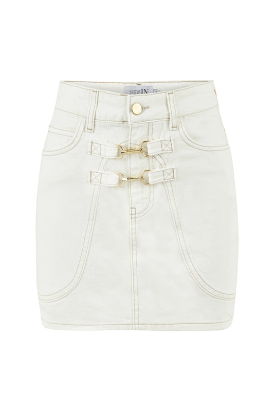 Kancalı Beyaz Denim Etek