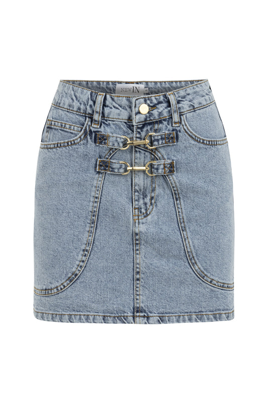 Kancalı Mavi Denim Etek