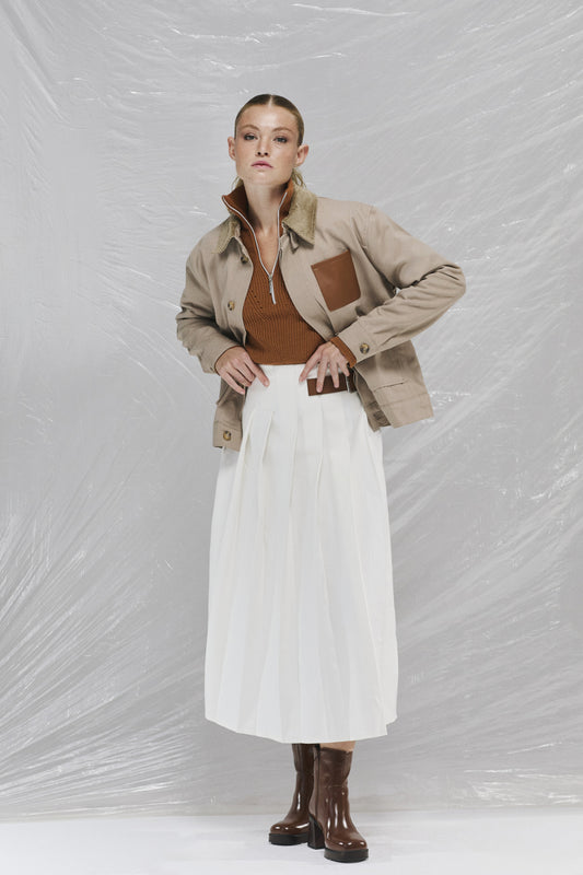 Kemer Detaylı Pileli Beyaz Denim Etek