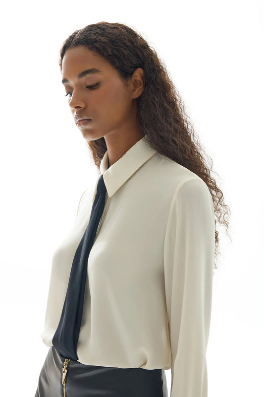 Ekru Kravat Detaylı Kadın Gömlek