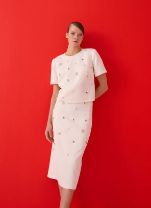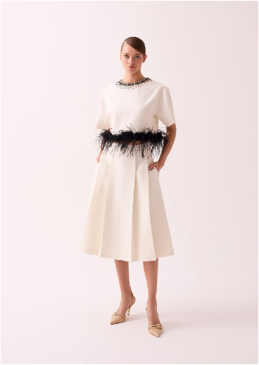 Taş İşlemeli Ekru Bluz