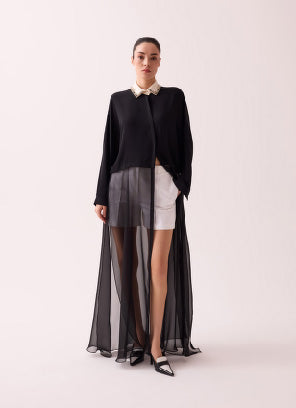 Yakası İşlemeli Uzun Şifon Gömlek