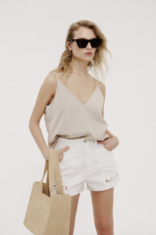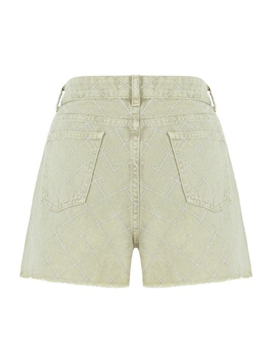 Brodeli Bej Denim Şort