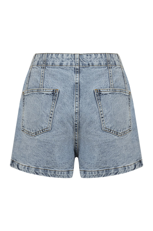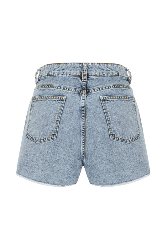 Droplu Buz Mavisi Denim Şort