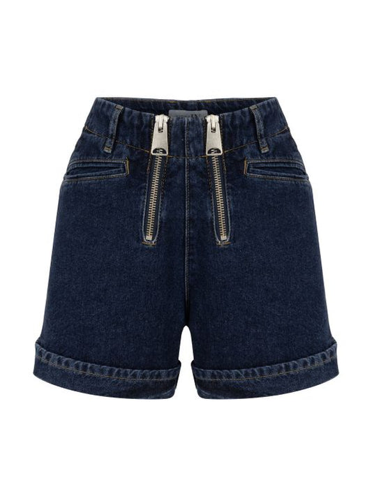 Çift Fermuarlı Denim Lacivert Şort
