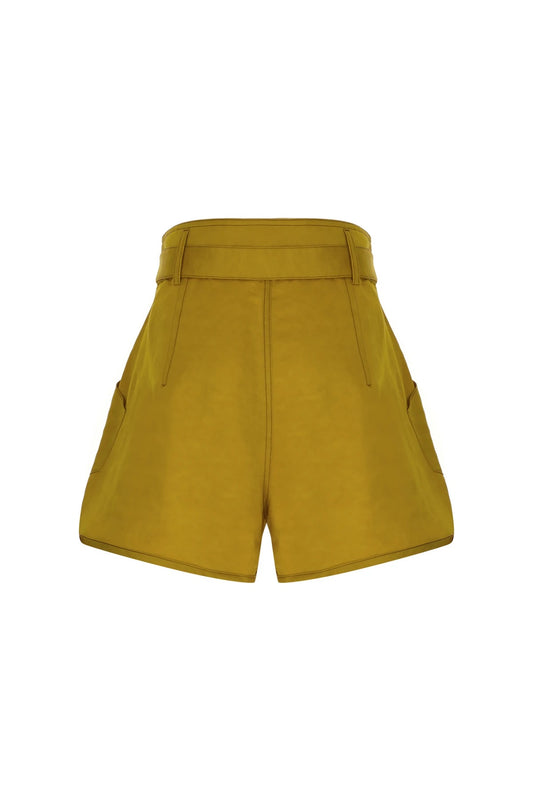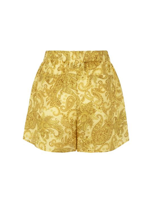 Sarı Desenli Keten Şort
