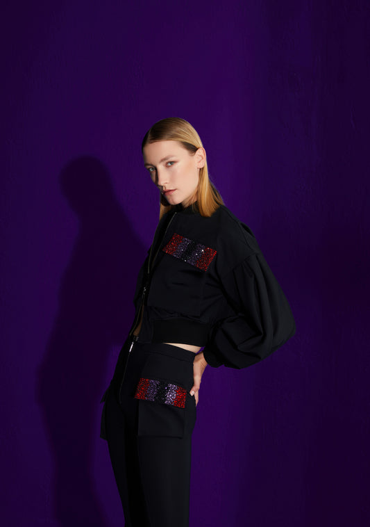 Ekru Önü Taş Ve İnci İşlemeli Kapüşonlu Bluz