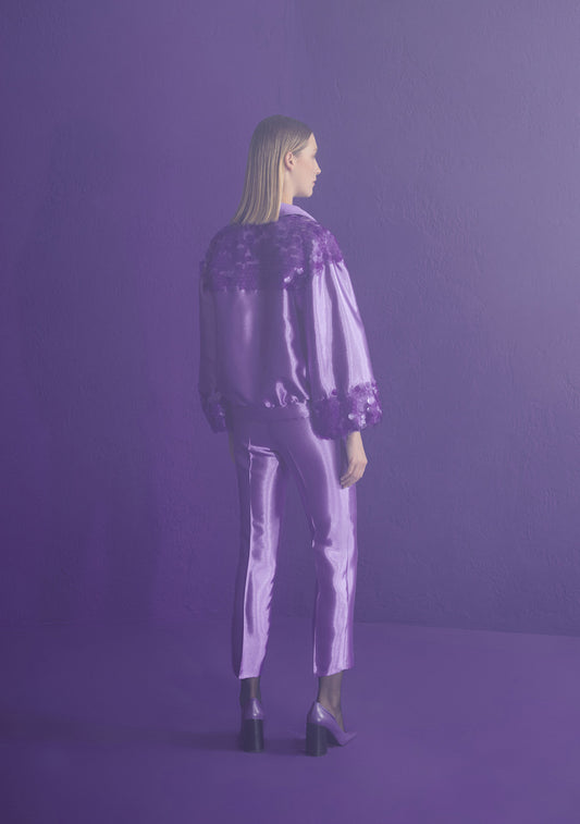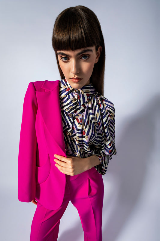 Gül Aksesuarlı Çizgili Gri Blazer Ceket