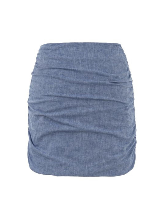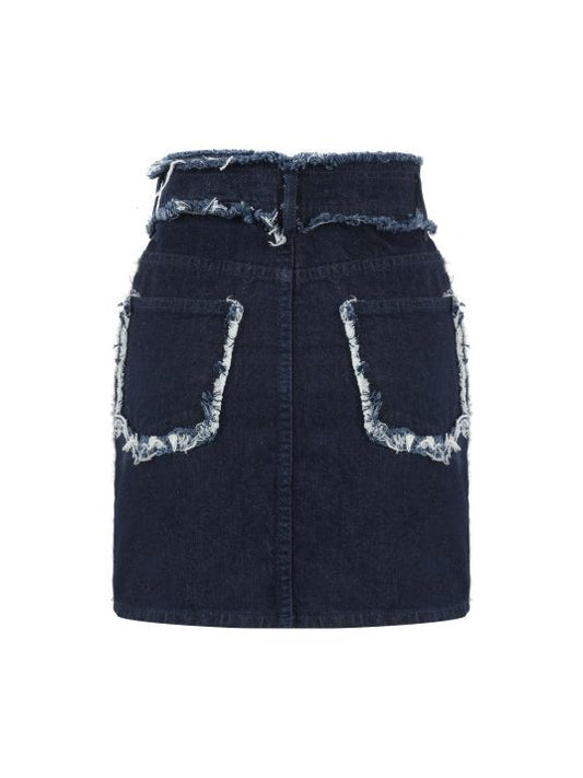 Boncuk İşleme Detaylı Asimetrik Mavi Mini Etek