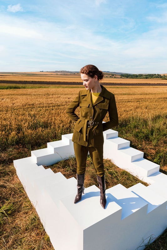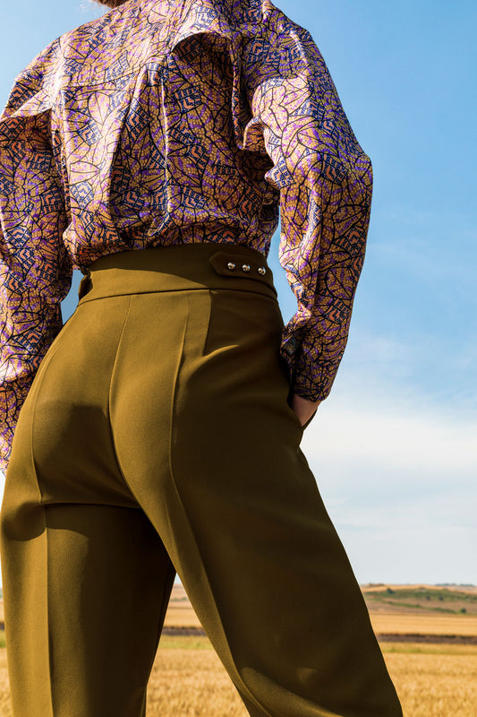 Yırtmaçlı Yüksek Bel Haki Pantolon