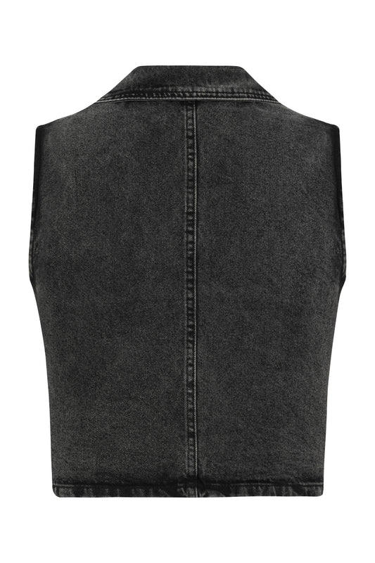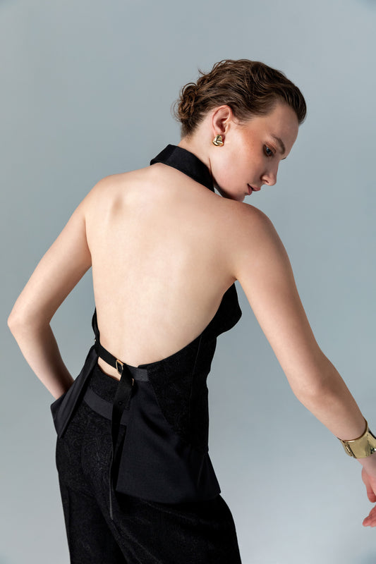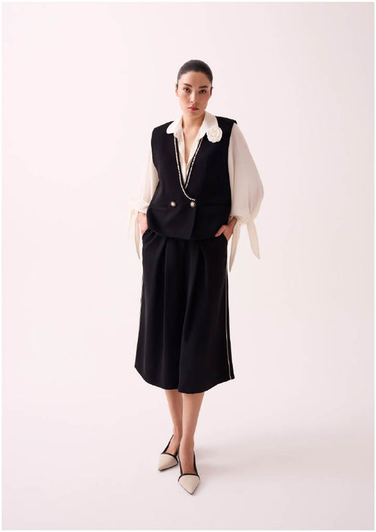 Sırt Bağlamalı Güpür Detaylı Siyah Yelek