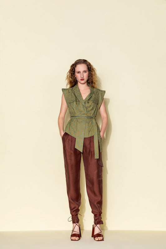 Boyundan Bağlamalı Cep Detaylı Fisto Bluz