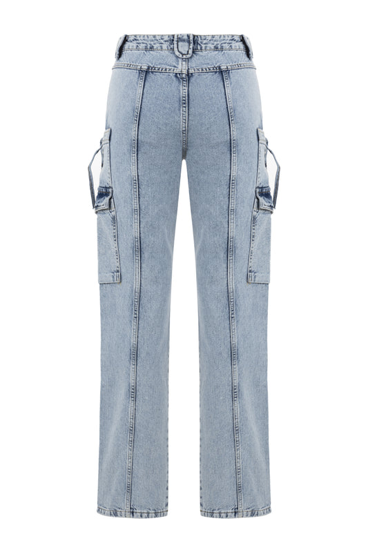 Yanı Bağcık Detaylı Buz Mavisi Denim Pantolon